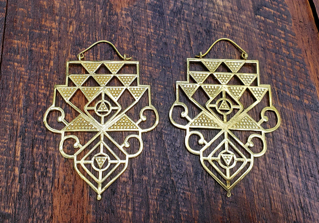 Unique Gold Tribal Earrings - Sacred Geometry Boho Indian Ethnic Jewelry