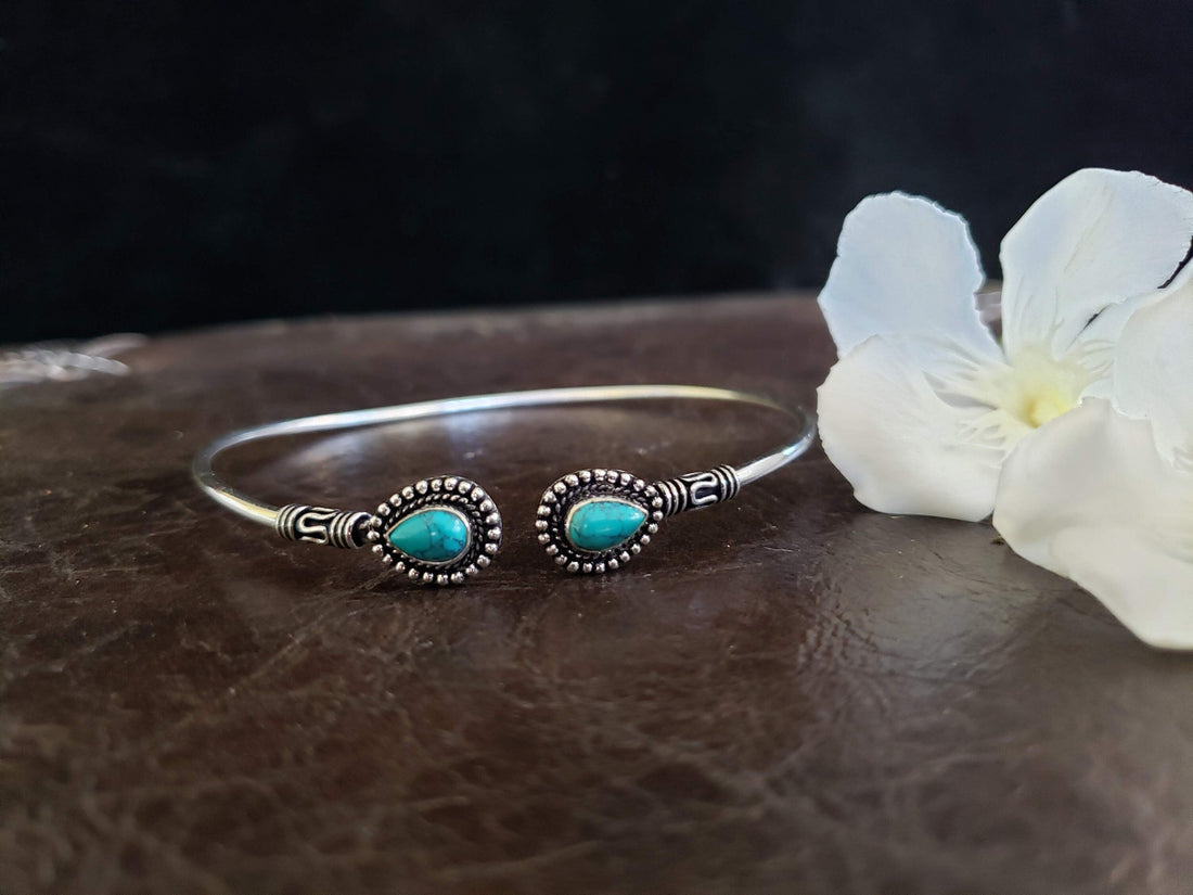 Simple Silver Turquoise Bangle - Boho Jewelry