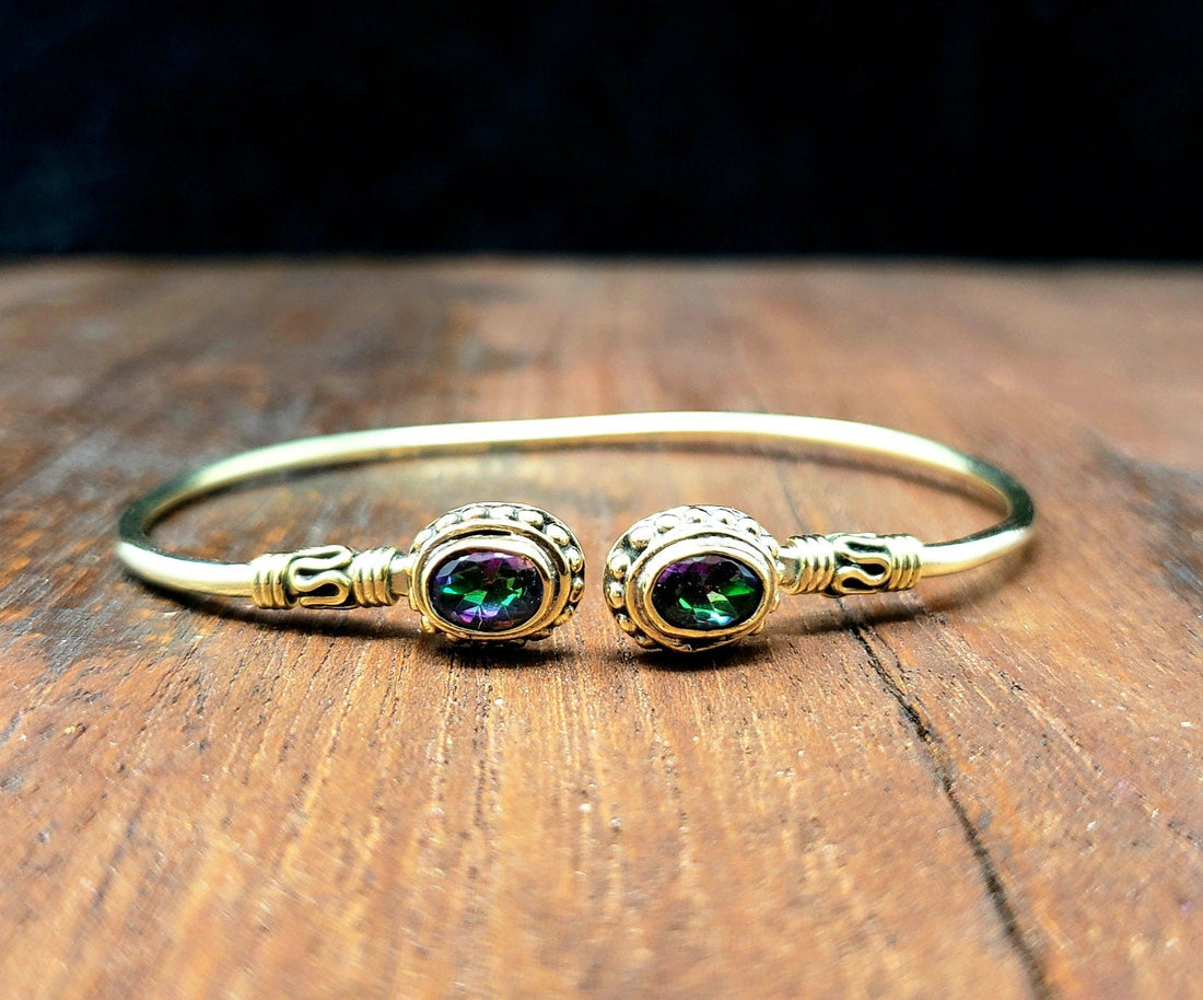 Simple Gold Mystic Topaz Bangle Bracelet Festival Boho Jewelry Bangle