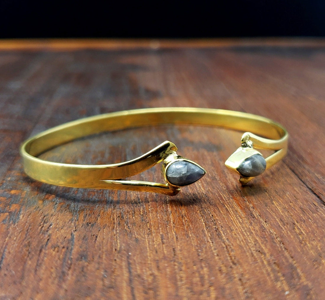 Simple Gold Labradorite Dagger Bangle Bracelet Festival Boho Jewelry Bangle