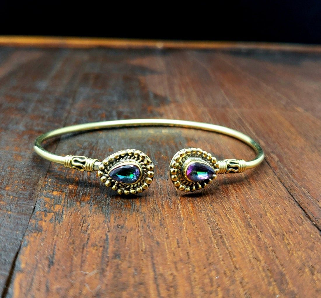 Simple Gold Mystic Topaz Bangle Bracelet - Tribal Gypsy Festival Boho Jewelry