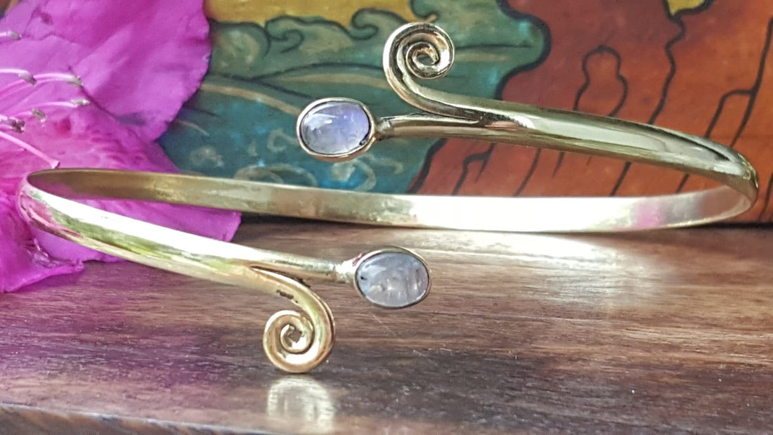 Moonstone Swirl Armcuff Arm Band Upper Arm Band.Brass Tribal Gemstone Crystal Bohemian Festival Bracelet Jewelry