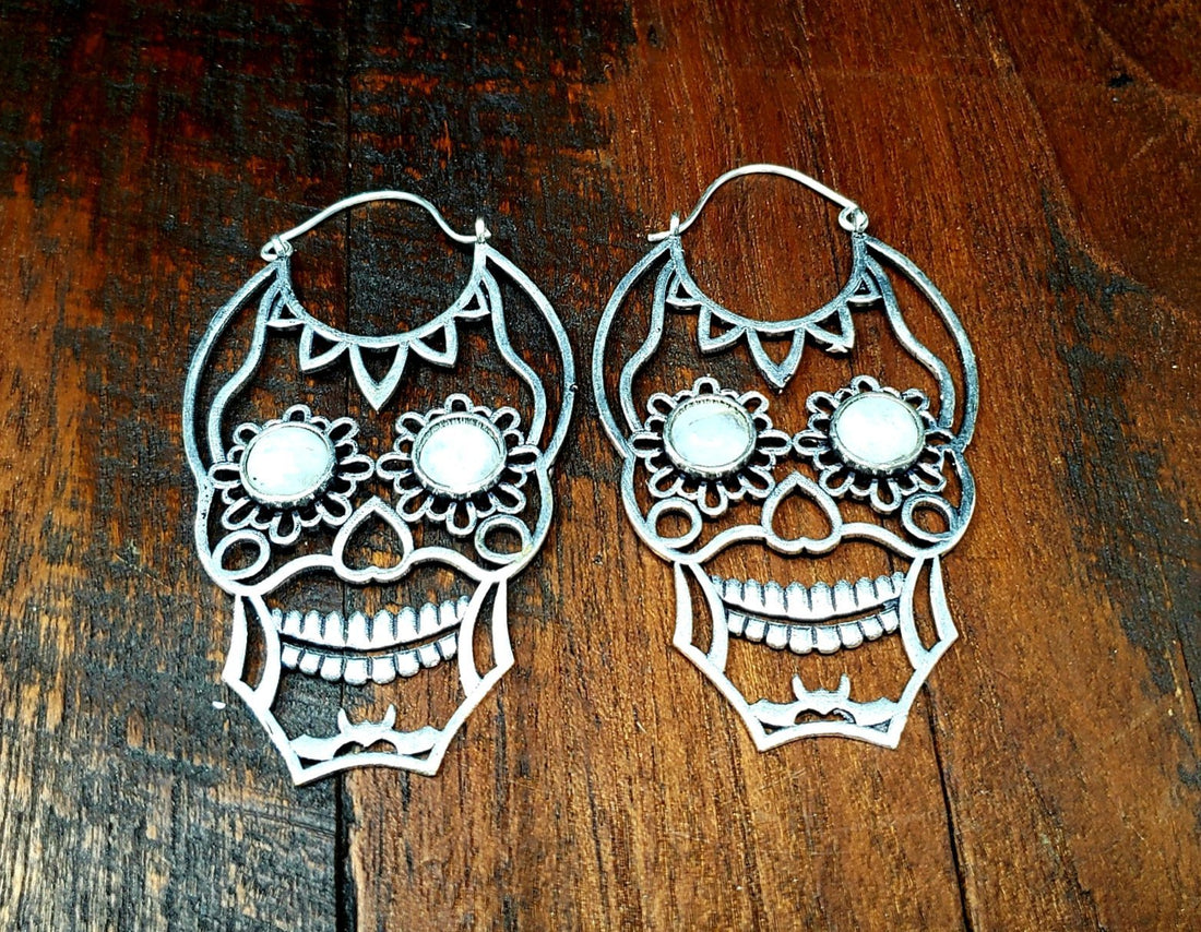 Moonstone Sugar Skull Earrings