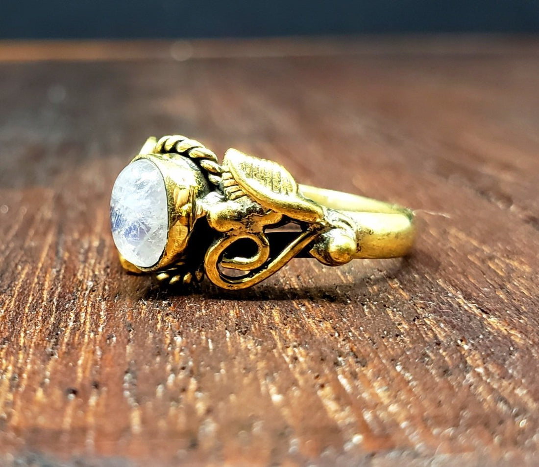 Silver Moonstone Vortex Ring Adjustable Tribal Crystal Gemstone Goddess Jewelry
