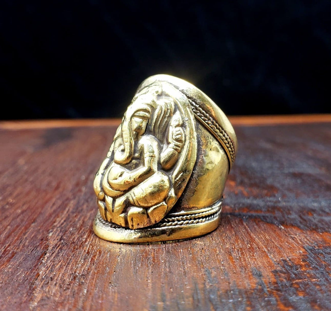 Gold Ganesha Adjustable Ring