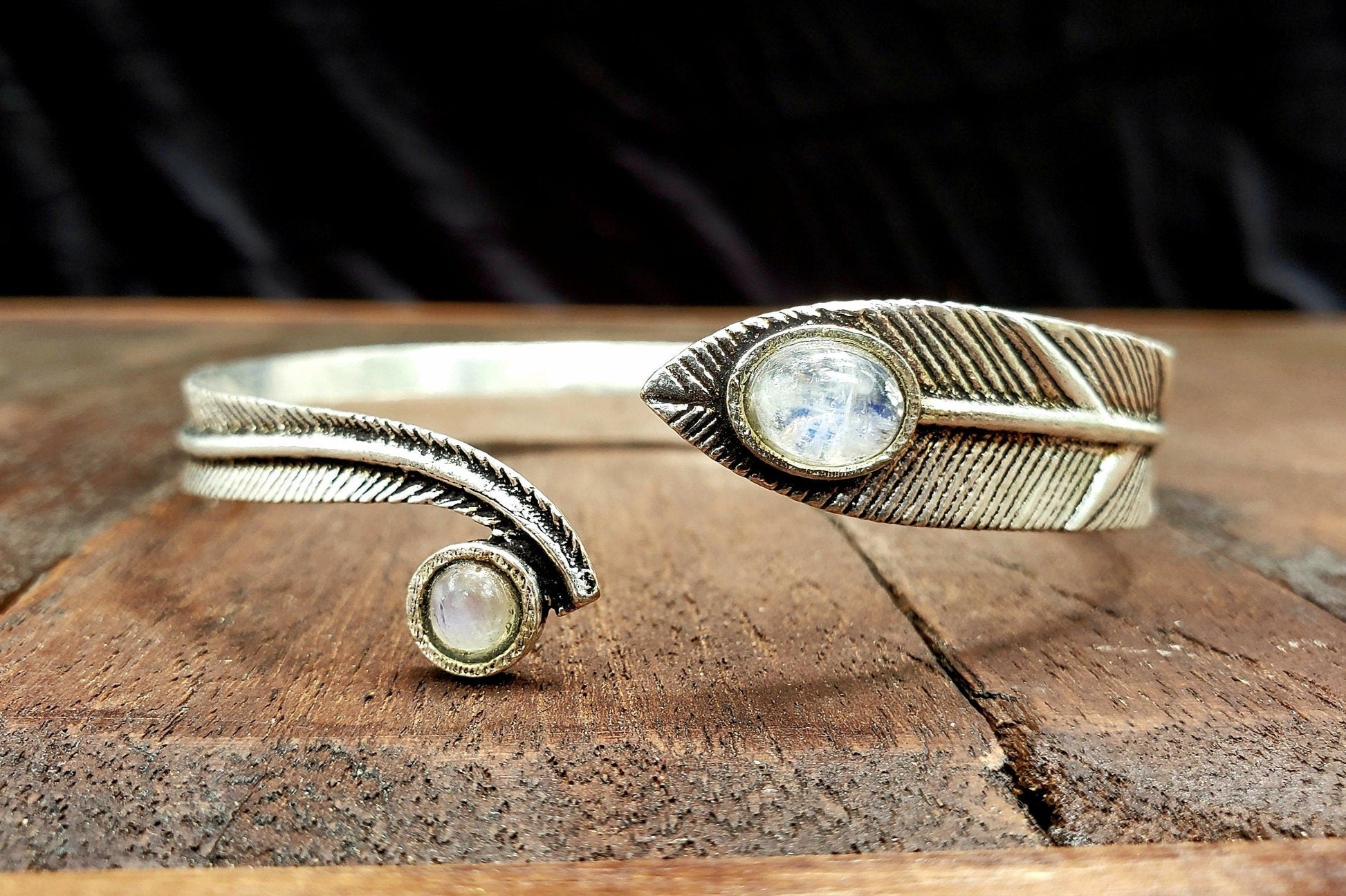 Silver Moonstone Feather Adjustable Arm cuff