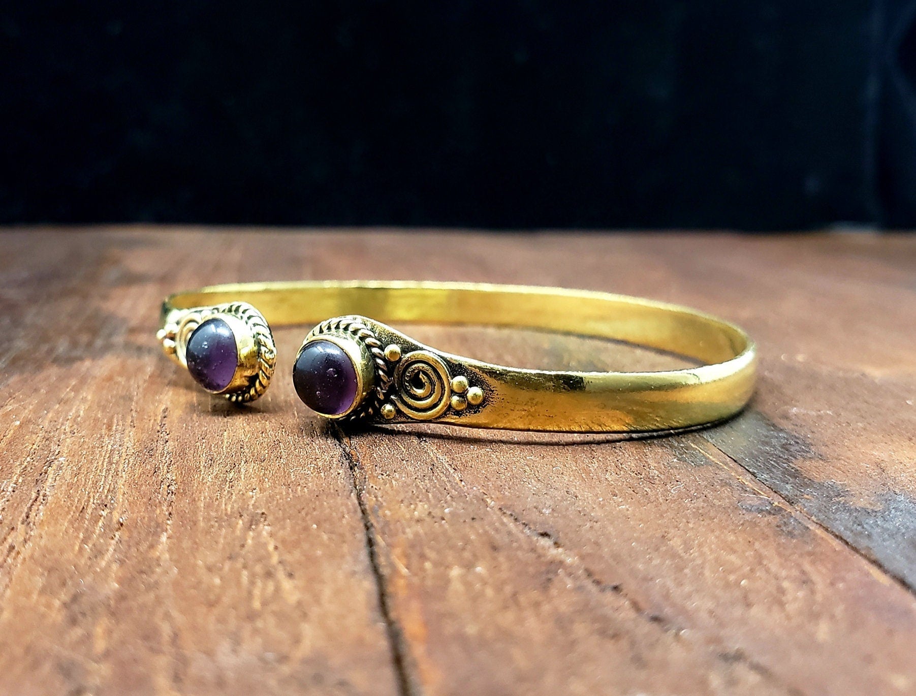 Simple Gold Amethyst Adjustable Bracelet Tribal Festival Boho Bohemian Jewelry