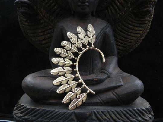 This tribal feather ear cuff is lightweight and adjustable to fit any ear! The etchings on the metal are intricate and the design covers completely behind the ear. We found this piece while traveling across the tribal deserts in India. Indian tribal jewelry is known for being unique, detailed and high quality.